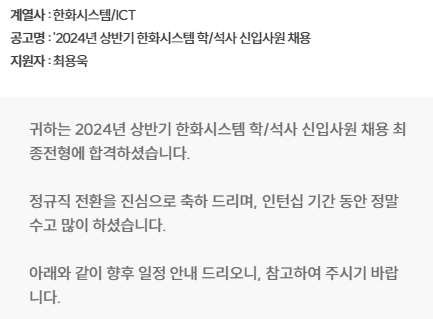 운이 좋게 합격한 한화시스템 최종 합격 후기...