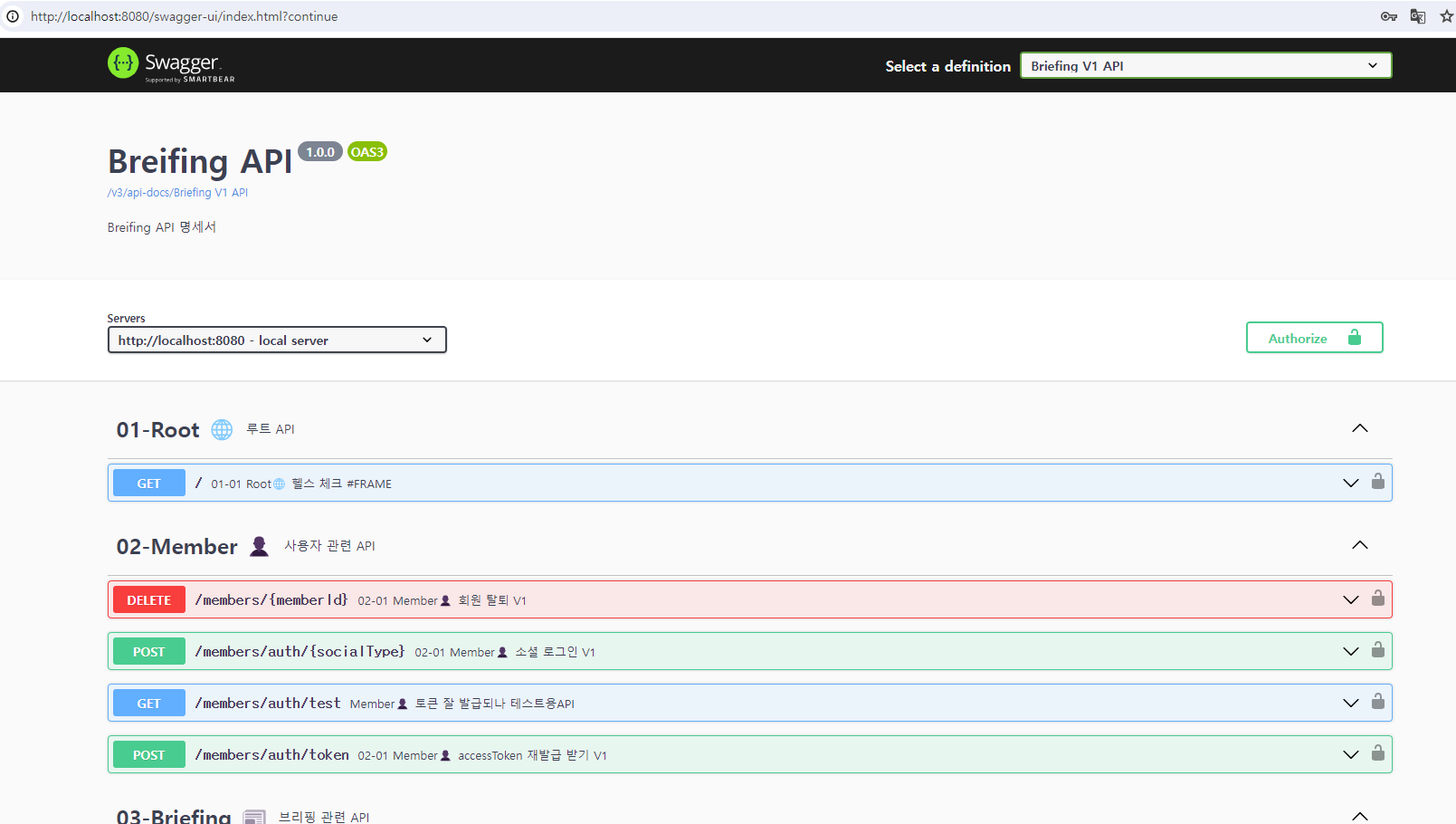 기존에는 Swagger의 API 명세 페이지에 누구든지 접근이 가능했고, 실제 브리핑 정보를 Spring Boot 서버에 Post하는 API에 대한 보안 처리가 없었기 때문에 우선적으로 Swagger 페이지에 보안 처리를 해두기로 했습니다.