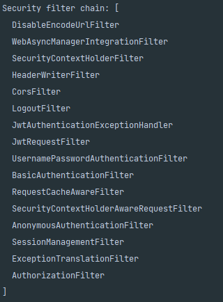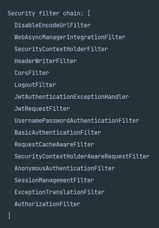 처음에는 제가 직접 추가한 JWT 필터에 브레이크 포인트를 걸고, 함수 Call 스택을 통해서 흐름을 파악하려고 했지만 이는 굉장히 불편했고 필터 체인의 순서가 어떻게 되어있는지 전체적인 그림을 먼저 파악하고 싶었습니다.