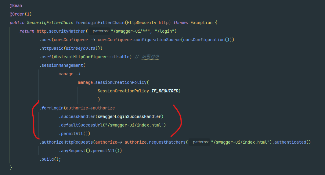 Briefing에서는 Swagger 접근 시 form Login을 하도록 했습니다.