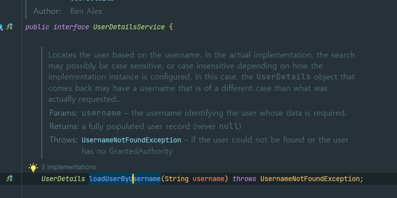 UserDetailsService는 UserDetails를 로드하는 역할을 합니다.