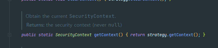 위의 매서드를 보면 Security Context를 리턴해주는 매서드가 존재합니다.