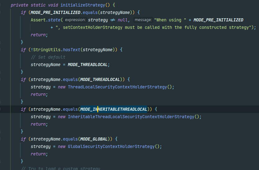 위의 코드를 보면 Context Holder에 Security Context를 저장하는 전략이 여러가지인 것을 확인 가능합니다.
