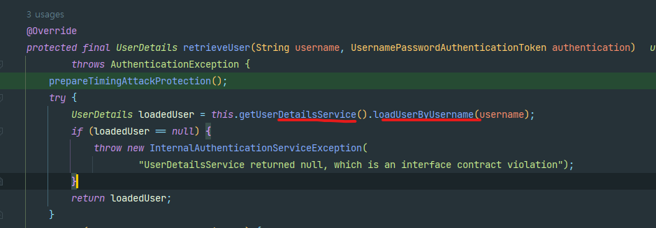 retrieveUser 매서드 내부에서 getUserDetailsService를 통해 UserDetailsService를 추출하고